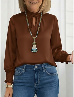 Mulheres Camisa Social Blusa Franzido Tecido Elegante Ativo Manga Longa Gola Redonda Tops regulares Ao ar livre Feriado Para Noite Marron Verde Verão Primavera
