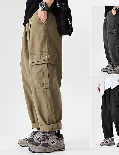Homens Calças Cargo Calças Botões Bolso multi Tecido Vestível Ao ar livre Diário Acampar e Caminhar Moda Clássico Preto Branco