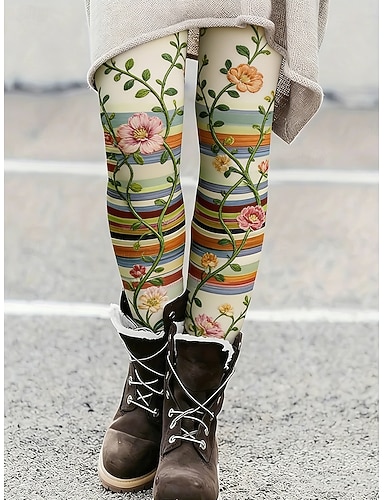 Mulheres Calças Leggings Leggings aconchegantes Férias Vintage Roupa de rua Comprimento total Natural Floral Gráfico Cintura elástica Imprimir Confortável Exterior Com Stretch Ao ar livre Streetwear