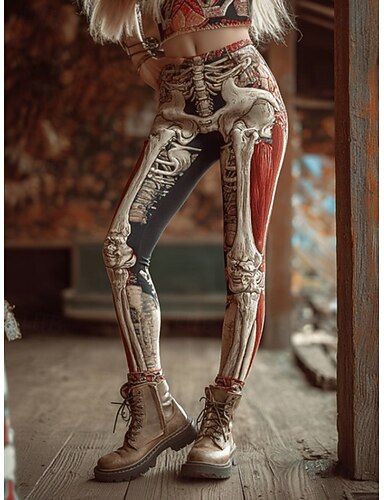 Calças Leggings Femininas Férias Moda Vintage Comprimento Pantalona Cintura Alta Impressão Gráfica Caveira Macia Respirável Stretchy Formal Férias Rua Branca Rosa Preta Rosa Laranja Primavera Outono