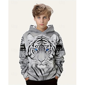 Para Meninos 3D Animal Tigre Moletom Manga Longa Primavera Outono Moda Roupa de rua Infantil 4-12 anos Com Capuz Ao ar livre Casual Diário Normal