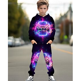 Para Meninos 3D Gráfico Jogo Conjunto de moletom e moletom Roupa Esportiva Fatos de treino Manga Longa Primavera Outono Diário Básico Casual Infantil 4-12 anos Com Capuz Ao ar livre Férias Esportes