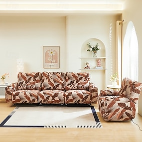 Conjunto de 3 peças de capa para cadeira de escritório, com estampa moderna de folhas em jacquard, elástica e lavável à máquina.