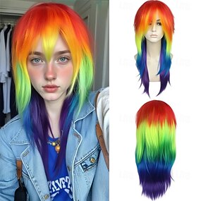 Peruca de Carnaval 2026 Vermelho Azul Verde Liso Longo Peruca sintética para festivais Mardi Gras Parada Cabelo para fantasia de cosplay para Feminino