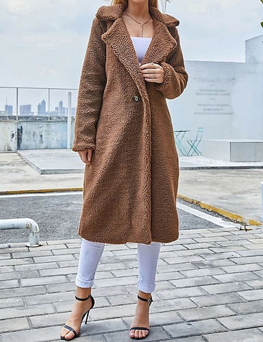 Mulheres Casaco de inverno Casaco de pelúcia Casaco A Prova de Vento Manter Quente Patchwork Botões Elegante Moda Casual Tecido Diário Ao ar livre Rua Longo Lapela Normal Manga Longa agasalhos Café