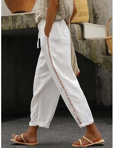 Mulheres Linho de algodão sintético Calça verão Calças Casual Diário Mimolet Tecido Com Cordão Bolsos laterais Respirabilidade Confortável Sem Elasticidade Ao ar livre Para Noite Cinzento Escuro