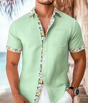 Homens Camisa Social Camisa de linho camisa de verão Roupa de Praia camisa de botão Côr Sólida Férias Curise Preto Branco Verde Claro Azul Claro Manga Curta Colarinho Verão Primavera Verão Roupa
