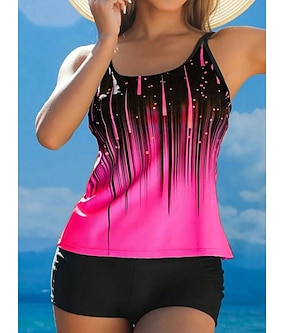 Tankini Feminino 2 Peças Maiô Boho Cheeky Costas Núas Controle de Barriga Cintura Alta Magro Roupas de Praia de Férias Floral U Neck Sem Mangas