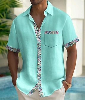 Homens Camisa de linho Camisa havaiana camisa de botão Férias Diário Rosa Azul Verde Manga Curta Aberto para a Lateral Verão Primavera Roupa camisas de colarinho