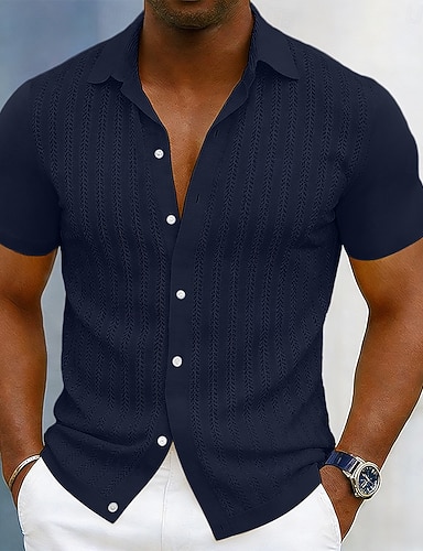 Homens Camisa Social camisa de verão camisa de botão Cardigã Preto Amarelo Roxo Azul Profundo Manga Curta Listrado Moderno Lapela Casual Roupa Diária Buraco Roupa Moderno Contemporâneo Moderno