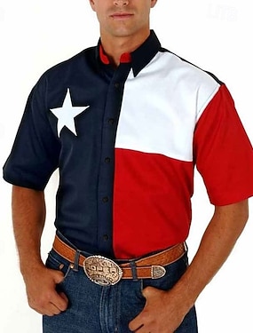 Homens 4 de julho - 250º aniversário dos EUA Bandeira americana camisa ocidental camisa de botão Camisa de caubói Manga Curta Ocidental Diário Verão Primavera Aberto para a Lateral Camisas de