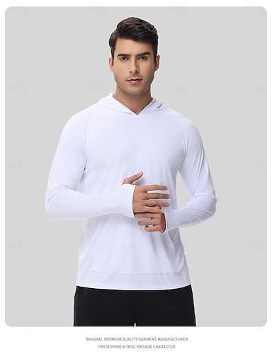 Homens Camiseta de Trilha Manga Longa Com Capuz Camiseta Ao ar livre Esticar Verão Primavera Outono Terileno Cinzento Escuro Preto Branco Pesca Exercite-se
