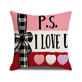 Capa de almofada para o Dia dos Namorados, estampa de coração e carta de amor, almofada decorativa versátil para sofá, almofada elegante para sala de estar, perfeita para decoração de casa no Dia dos