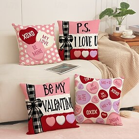 Conjunto de capas de almofada para o Dia dos Namorados, estampa de carta de amor, design de coração, almofadas decorativas para sofá, almofadas aconchegantes para decoração de sala de estar e quarto.