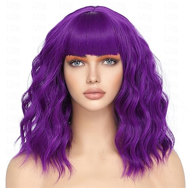 Perucas sintéticas Reta natural Franja Lisa Peruca 8 polegadas A1 Cabelo Sintético Mulheres Roxo