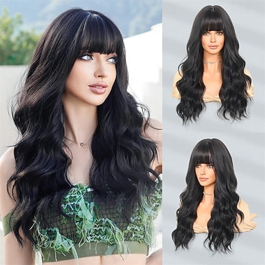 peruca com franja longa peruca ondulada para mulheres perucas sintéticas cacheadas perucas de substituição de cabelo para meninas uso diário para festas 26 polegadas