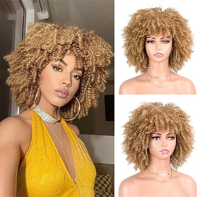 peruca afro crespa cacheada com franja 12 polegadas perucas sintéticas completas perucas curtas crespas cacheadas resistentes ao calor para festa diária perucas de carnaval