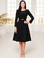 Linha A Longuette Até os Joelhos Vestido de festa Vestido Coquetel Manga 3/4 Colarinho de Camisa Elegante Simples Minimalista Formal Convidado do casamento Tecido Que Estica Vestido Para Mãe dos