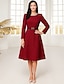 Vestido Simples Mãe da Noiva Elegante Simples Decote Redondo Comprimento do Joelho Poliéster Manga Longa com Cor Sólida Vestido de Formatura