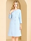 Vestidos de Cocktail Mãe da Noiva Sheath  Vestidos Elegantes Convidada de Casamento Cocktail Party Comprimento do Joelho Manga 3/4 Gola de Camisa Bolso Stretch Satin com Faixa  Fita Vestido de Dia de