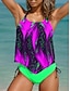 Maiôs Femininos Tankini 2 Peças Maiôs Cheeky Sem Costas Moda Praia de Férias Ombre Gráfico Decote U Sem Mangas