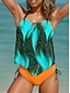 Mulheres Roupa de Banho Tankini 2 partes Cintura Alta roupa de banho Frente Única Férias Roupa de Praia Âmbar Gráfico Decote U Sem Manga Fatos de banho
