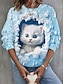 Moletom Feminino de Natal com Animais Gato Gráfico Casual de Manga Longa Gola Redonda Tops Regulares Casual de Rua Impressão de Feriado Vermelho Azul Caqui Primavera Outono Inverno