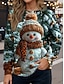 Pullover Gráfico para Mulheres no Natal Quente Clássico Casual Mangas Longas Gola Redonda Tops Regulares Casa Rua Dailywear Impressão Vermelho Azul Roxo Verde Outono Inverno