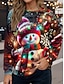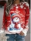 Mulheres camisolas Gráfico Boneco de Neve Natal Casual Manga Longa Gola Redonda Tops regulares Casual Feriado Imprimir Vermelho Outono Inverno