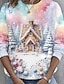 Natal Mulheres Camiseta Gráfico Boneco de Neve Floco de Neve à moda Casual Manga Longa Decote V Tops regulares Diário Botões Imprimir Assimétrico Vermelho Azul Verde Outono Inverno