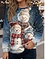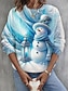 Mulheres Moletom Moletons Gráfico Boneco de Neve Natal Moda Casual Manga Longa Gola Redonda Decote Redondo Tops regulares Rua Dia a Dia Casual Imprimir Azul Claro Primavera Outono Inverno