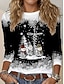 Natal Mulheres Camiseta Gráfico Boneco de Neve Árvore de Natal Vintage Moda à moda Manga Longa Gola Redonda Decote Redondo Tops regulares Diário Final de semana Imprimir Azul Preto + branco