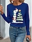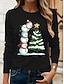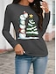 Natal Mulheres Camiseta Gráfico Boneco de Neve Árvore de Natal Vintage Moda à moda Manga Longa Gola Redonda Decote Redondo Tops regulares Diário Final de semana Imprimir Azul Preto Vinho Cinzento