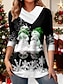 Blusa de Floco de Neve de Papai Noel para Mulheres - Natal - Gráfico - Vintage - Estilo Tropical - Manga Longa - Gola em V - Tops Regulares - Estampa Diário - Patchwork - Preto - Branco - Vinho -