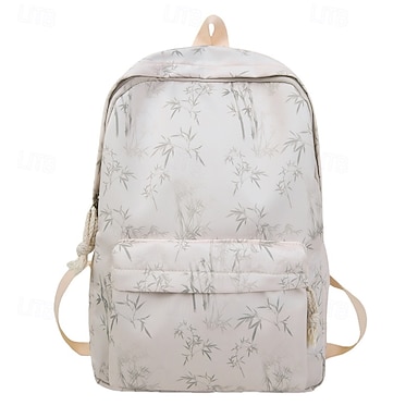Mochila feminina de lona estética com estampa de bambu – mochila escolar leve para adolescentes e universitárias