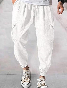 Homens Calças de linho Corredores de carga Calças Calça verão Calças de praia Com Cordão Cintura elástica Bolso multi Tecido Conforto Respirável Casual Diário Feriado Moda Estilo Clássico Preto Branco