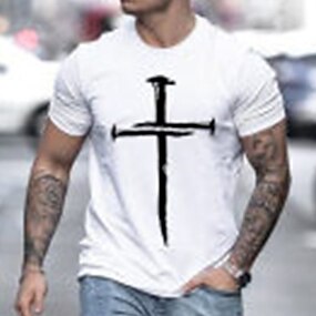 Camiseta Gráfica Masculina Casual de Manga Curta com Design de Cruz de Unhas Beijes de Fé