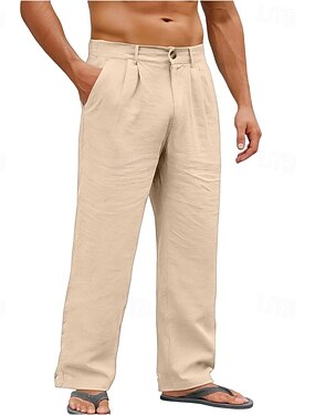 Homens Calças de linho Calças Calça verão Calças largas Calças de praia Bolsos Perna reta Côr Sólida Conforto Respirável Comprimento total Casual Diário Ao ar livre Férias Moda Azul Preto Sem