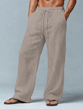 Homens Calças de linho Calças Calça verão Calças largas Calças de praia Com Cordão Cintura elástica Perna reta Tecido Conforto Respirável Comprimento total Diário Feriado Para Noite Moda Estilo