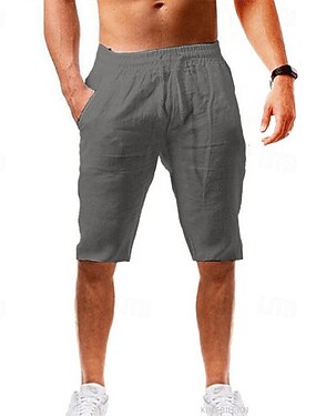 Homens Calção Shorts de linho Shorts de verão Shorts de praia Shorts casuais Com Cordão Punho com Elástico Tecido Conforto Respirável Comprimento da panturrilha Ao ar livre Feriado Roupa Diária Moda