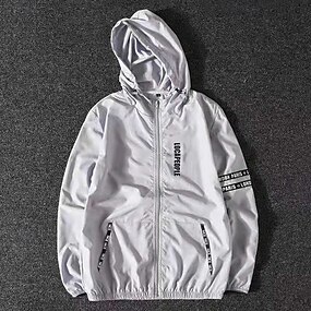 Homens jaqueta leve Casaco exterior jaqueta de verão Jaqueta Corta-Vento Férias Diário Filtro Solar Respirável Bolsos Primavera Verão Tecido Moda Clássico Com Capuz Padrão Branco Cinzento Casaco
