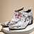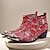 Botas de cano curto masculinas com estampa de cobra vermelha e preta e detalhes metálicos – design moderno e arrojado para festas e comemorações de Natal em clima festivo.