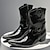 Botas de cano curto masculinas em couro sintético preto envernizado - couro sintético polido com design elegante e fecho de fivela, perfeitas para eventos formais e sofisticados.