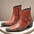Botas de cano curto masculinas com estampa de cobra, em couro marrom moderno com fecho de zíper, perfeitas para sair à noite ou para ocasiões especiais.