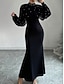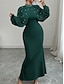 Mulheres Vestido Longo Vestido da bainha Elegante Festa coquetel Ao ar livre Festa Convidado do casamento Normal Côr Sólida Manga Longa Colarinho Chinês Preto Verde Escuro Primavera Outono Inverno