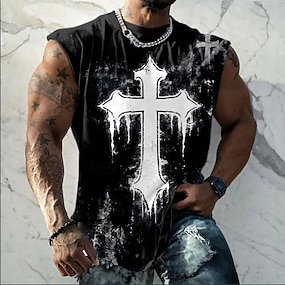 Camiseta Regata Sem Mangas Cruzados Bíblia Cruz Gótica Fumaça Gráfica Impressão Total Estética Escura Camiseta de Musculação Biker Streetwear Roupas de Designer