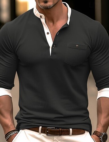 Homens Camiseta Camisa Henley T-shirt Camisa de manga longa Manga Longa Bloco de cor Moda Designer Básico Patchwork Henley Férias Rua Para Noite Primavera & Outono Preto Azul Marinho Laranja Camiseta