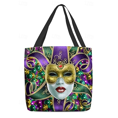 bolsa tote de luxo com estampa de máscara de carnaval – bolsa de ombro vibrante inspirada em festivais, bolsa de compras espaçosa e durável, perfeita para carnaval, festas e uso diário