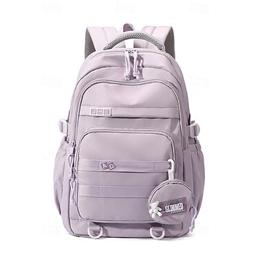 Mochila feminina de nylon, várias cores, grande capacidade com diversos bolsos, design leve e durável, ideal para férias na praia, esportes ao ar livre e uso casual diário.