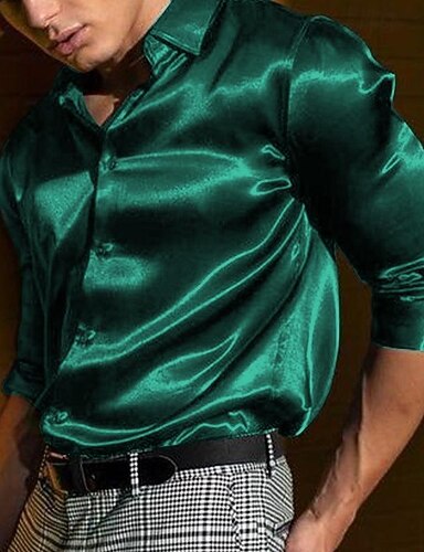 Homens Camisa Social Blusa de cetim Camisa casual camisa de botão Tecido Casamento Férias Azul Claro Preto Branco Vinho Manga Longa Lapela Primavera & Outono Roupa